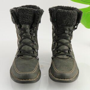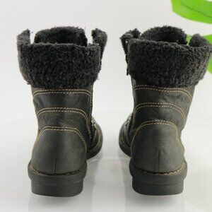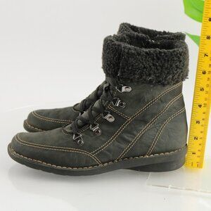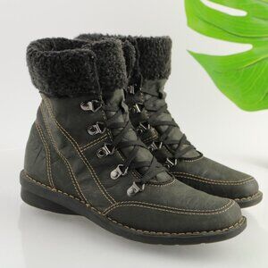 Clarks Womens Nikki Imperial Boot Size 8.5 Black Leather Lace Up Faux Fur Bootie