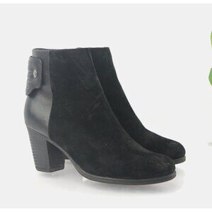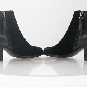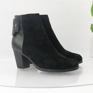 Clarks Womens Palma Rylie Boot Size 7.5 Black Suede Leather Block Heel Bootie