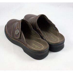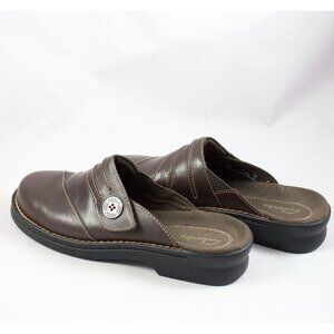 Clarks Womens Patty Beli Brown Leather Slip-On Clogs Mules Size 7M Shoes