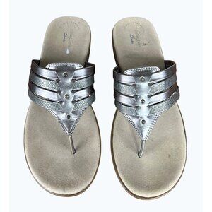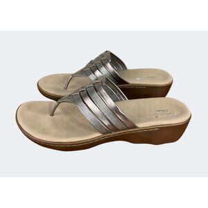 Clarks Womens Phebe Carman Strappy Metallic Bronze Wedge Sandals Size 9.5M