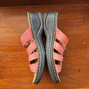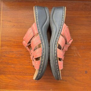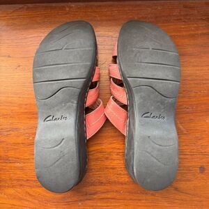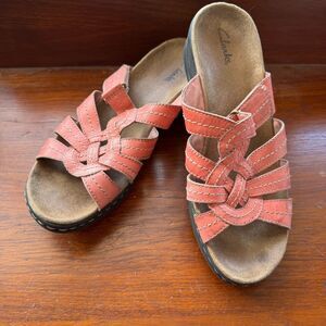 Clarks Women's Pink Coral Wedge Leather Sandals 9.5