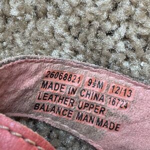 Clark’s pink strappy wedge leather sandals with adjustable velcro strap. They are pink/tending towards coral in color. They do show some wear, but have a lot of life left in them and can be the perfect piece for “that” outfit.