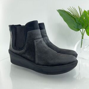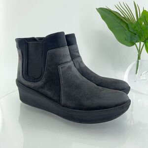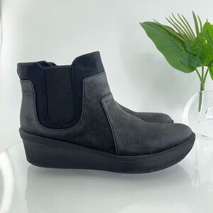 Clarks Women's Rose Sun Boot Size 12 Chelsea Bootie Pull On Black Leather Wedge