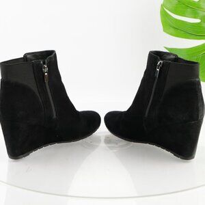 Clarks Womens Rosepoint Bell Boot Size 9.5 Black Suede Chelsea Bootie Wedge Heel