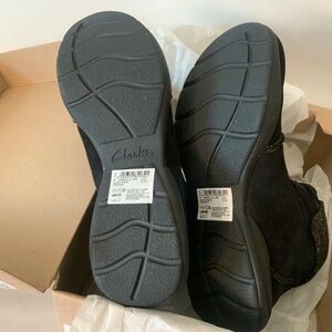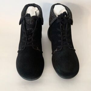 Clarks Women's Roseville Black Suede Lace up Ankle Boot Round Toe Casual Booties