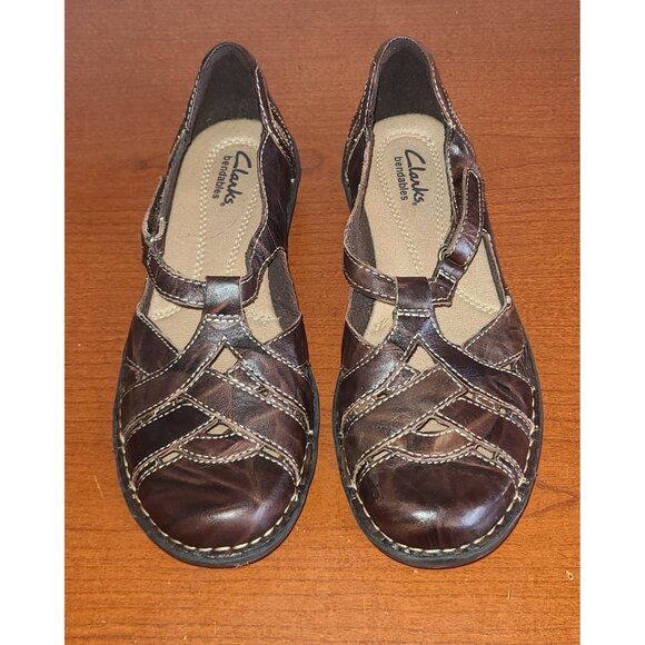 Clarks Womens Shoes 7M Bendables Brown Leather Strap Flat Stitched