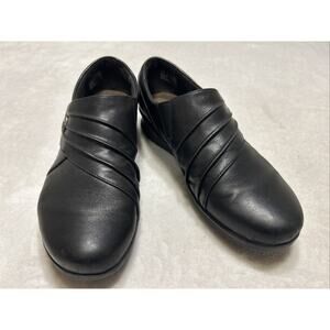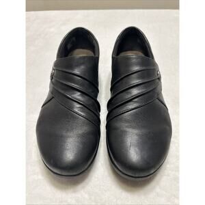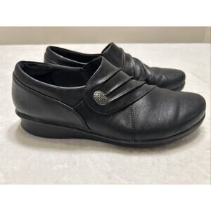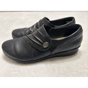 Clarks Women’s Shoes Size 7.5 Black Leather Slip On Loafers Wedge Heel Casual
