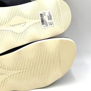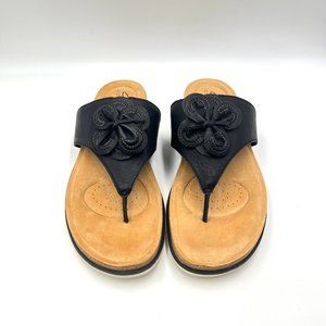 Clarks Womens Size 12 Brynn Style Black Leather Slip On Floral Sandals Shoes