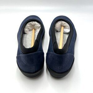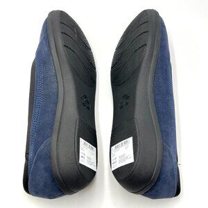 Clarks women's Alya low slip on microsuede blue and black comfort shoes.