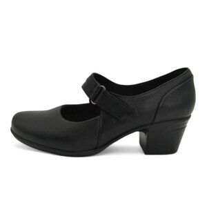 Clarks Women's Size 8 Wide Black Emslie Lulin Mary Jane Chunky Block Heel Pumps