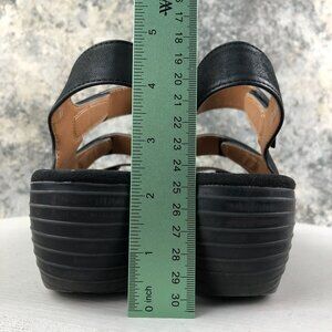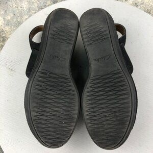 Clarks Women's Size 9.5M Reely Juno Black Leather 3 Strap Wedge Heel Sandals