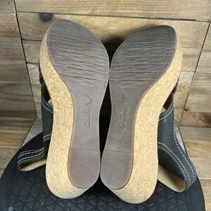 Clarks Womens Size 9M Black Aisley Tulip Sandals Suede Wedge Heels Slingback