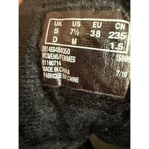The product is a pair of Clarks women's Skechers black waterproof high top winter boots in size 7.5M (EU 38). These boots are designed to keep feet warm and dry during the winter season, with a waterproof feature that ensures they are protected from snow and ice. The high top style and bootie design make them both stylish and functional, perfect for colder weather. Made by the reputable brand Clarks, these boots combine quality construction with practical winter features for a reliable footwear option for women.