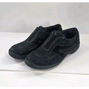 Clarks Women's Slip-on Sneaker Black Suede Leather Sz 8.5 Comfort Walking Work