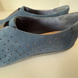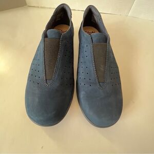 Clarks Womens Soft Cushion Blue Nubuck Perforated Comfort Slip On Loafers Shoes. Size 8.5.