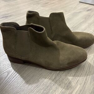 Clarks Women’s Sz 10 Trish Chelsea Dark Olive Suede Boots Ultimate Comfort NEW