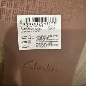 NEW WITHOUT BOX These Clarks Women's Trish Chelsea Boots in size 10 feature a dark olive suede upper with a pull-on closure and ankle shaft style. The boots offer ultimate comfort with a low block heel, making them suitable for various occasions such as travel, parties, casual outings, and business settings. Crafted from a leather/man-made material composition, these booties are designed for the winter, fall, and spring seasons, providing a stylish and versatile option for women looking for both comfort and fashion.