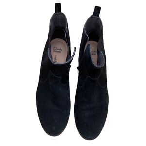 Clarks Womens Sz 11M Black Suede Zip Buckle Ankle Fashion Boots Bootie
