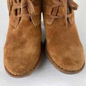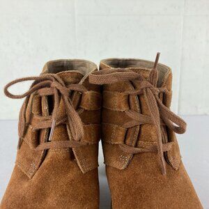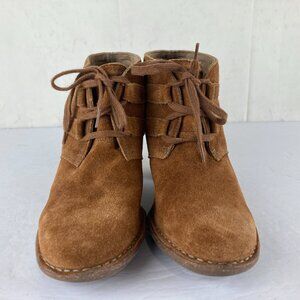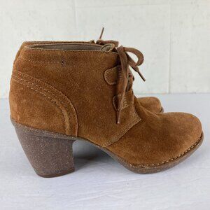 Clarks Womens Sz 9 Brown Suede Boho Lagenlook Lace Up Block Heel Shoes Booties