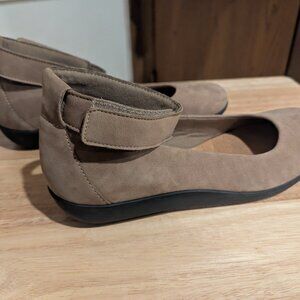 Clarks brand Tan Leather Ballet Flats with Supportive and Decorative Ankle Strap- Very soft leather and comfortable insole.