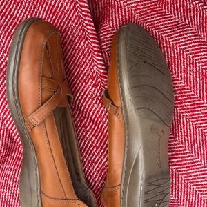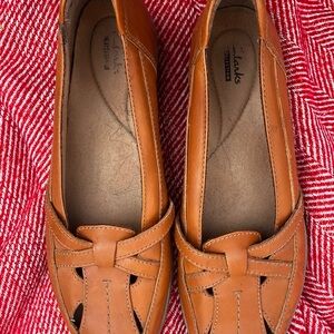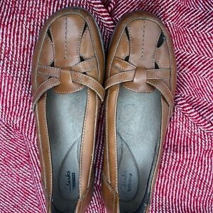 Clarks Women's Tan Leather Loafers w criss cross cutouts
