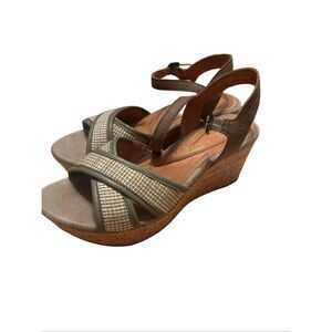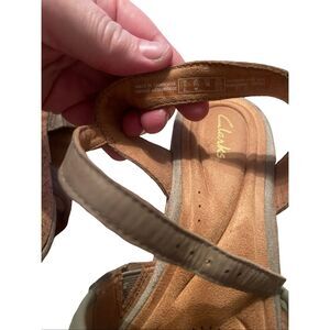 Clarks Womens Tan Olive Green Leather Elleri Plub Wedge Sandal Size 7.5