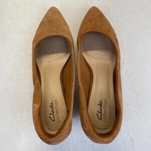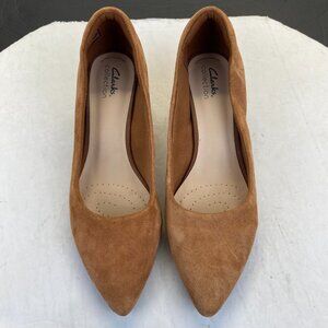 Clarks Women's Teresa Step Dark Tan Suede 261678354070 Heels,Size 9.5M