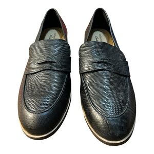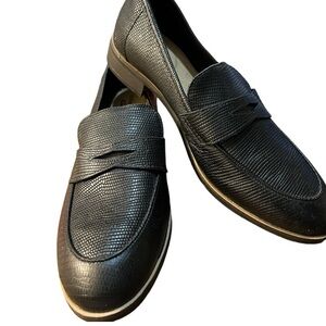 Clarks penny loafers in black reptile print designed for comfort with lots of classic style Casual & Dress Shoe Style