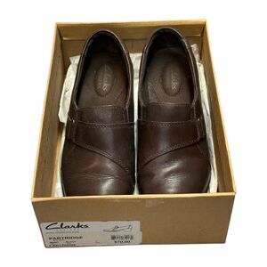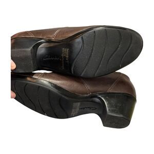 Clarks Women's US 7.5M Clog Brown Leather Casual Slip-On Block Heel Shoes 62729