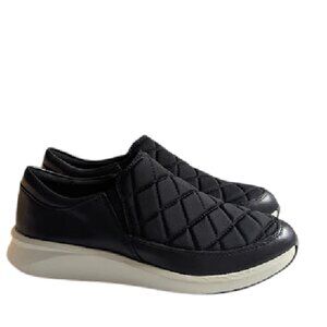 Clarks Womens Un Rio Spark Black Leather & Textile Slip On Loafers Size 7 NWOB