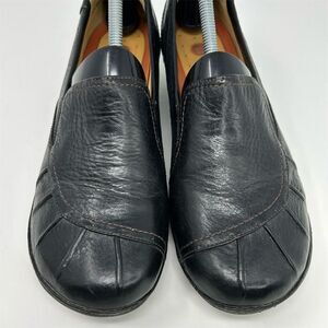 Clarks Women's Unstructured Black Leather Slip-On Loafers Size 10M Casual