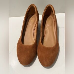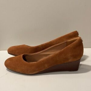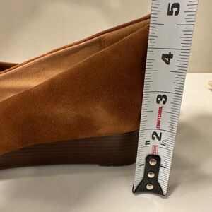Step out in style with these elegant rusty brown suede wedge shoes. Perfect for any occasion, they offer both comfort and sophistication. Size 10. In excellent condition!
