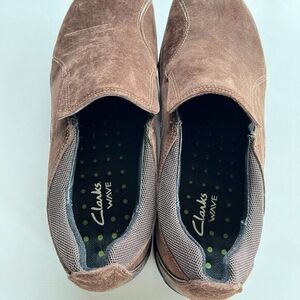 Clarks Womens Wave Crest Walk Brown Suede Slip On Comfort Outdoor Shoes Sz 9.5M
