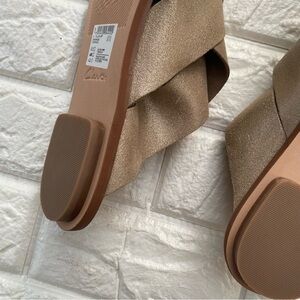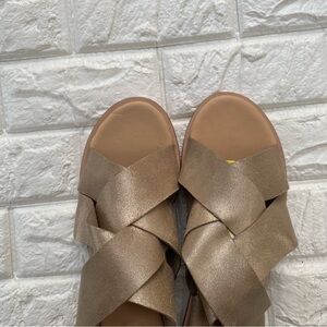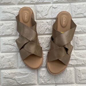 Clarks Women’s Willow Art Slide Sandals champagne color, Leather Size 10