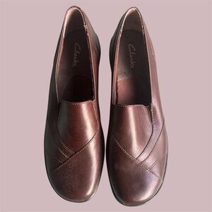 Clarks Women's slip on brown leather loafers EUC size 9