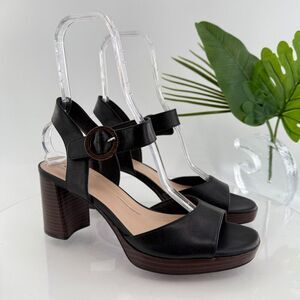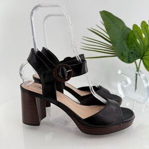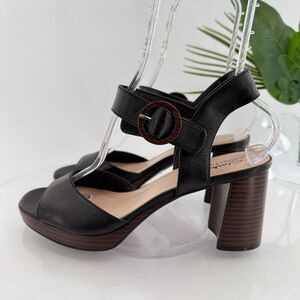 Clarks Womens AmbyrLyn Ruby Sandal Size 11 Black Leather Slingback Block Heel