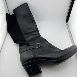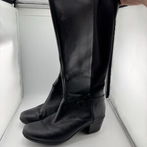 Clarks Womens's Emslie March Black Leather Cuir Noir Knee Boot Size 8 M