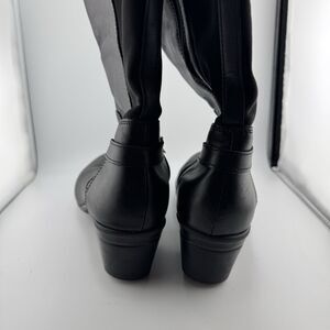 The Clarks Women Emslie March Black Leather Knee Boot in size 8 M is a stylish and versatile shoe option for women. With a closed toe, zip closure, and low block heel, this knee-high boot is perfect for various occasions such as travel, casual outings, and business events. The solid black leather material and regular calf width make it a timeless and durable choice for the winter, fall, and spring seasons. Made by the reputable brand Clarks, this knee boot exudes both comfort and sophistication.