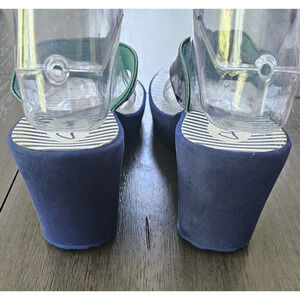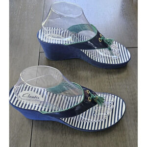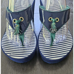 Clarks Yacht Flash Wedge Thong Sandals Size 9 Blue Green Tassels Coastal
