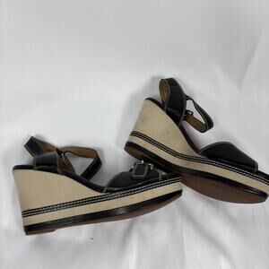 Condition: In good condition, there is some glue staining on the insides of the wedges that can be seen in the last 2 photos. Soles look brand new and hardly worn.