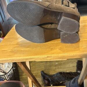 Clark’s beautiful suede boots. They are a dark gray size 6 1/2. Gently used.