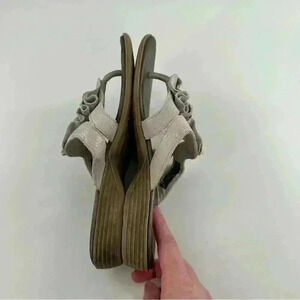 Clarks bendable sandals size 6 gray snakeskin print metallic floral flip flops
