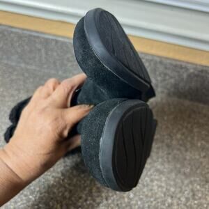 Clarks bendables Womens 7.5 Black Suede Above Ankle Boots Faux Fur Trim Zip Flat