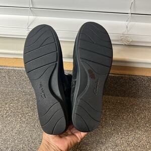 Clarks bendables Women's Size 7.5 M Black Suede Above Ankle Boots Faux Fur Trim Zip Flat