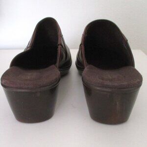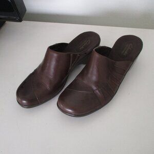 Clarks bendables Womens Brown Leather Mules w/ 2" Block Heels - Size 9.5M