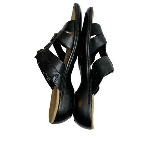 Clark’s bendables black leather wedge sandals size 6. Good condition. 4566