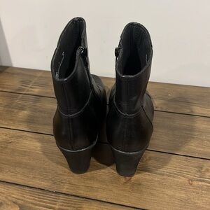 Clarks women’s black leather upper ankle bootie 2.5” heel
