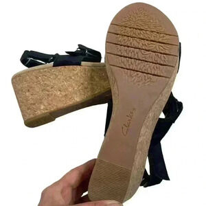 Clark’s black suede upper Comfort collection ortho light wedge sandals size 10