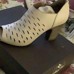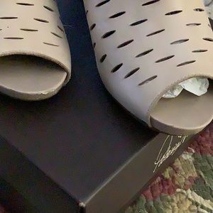 Very beautiful color Clark’s booties a few scuffs in the front and the back has a bit of driving marks used a few times but really a nice pair cut out holes make them really nice soft and comfortable