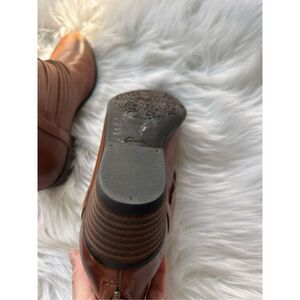 Clark’s brown booties size 6.5 comfy real leather boots soft insoles 1.5 inch he